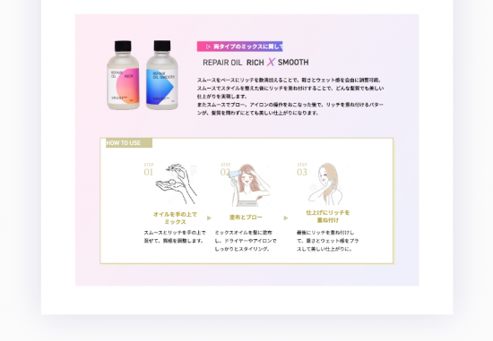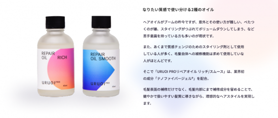 そこで「URUOI PROリペアオイル リッチ/スムース」は、業界初の成分「ナノファイバージェル®」を配合。